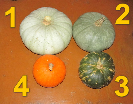 Тыквы на фото отличаются друг от друга. Но различие между тыквами 1 и 2 гораздо меньше, чем между тыквами 1 и 4. Можно оценить различие между тыквами 1 и 4, используя различие между тыквами 1 и 2 в качестве единицы измерения. Или можно взять любую пару тыкв и, используя различие (или сходство) между ними в качестве единицы измерения, оценить различие (или сходство) любой другой пары. Это похоже на оценку ошибки, о которой я писал выше. Назовём эту методику "сравнительной оценкой". Как её можно применить для изучения языка?